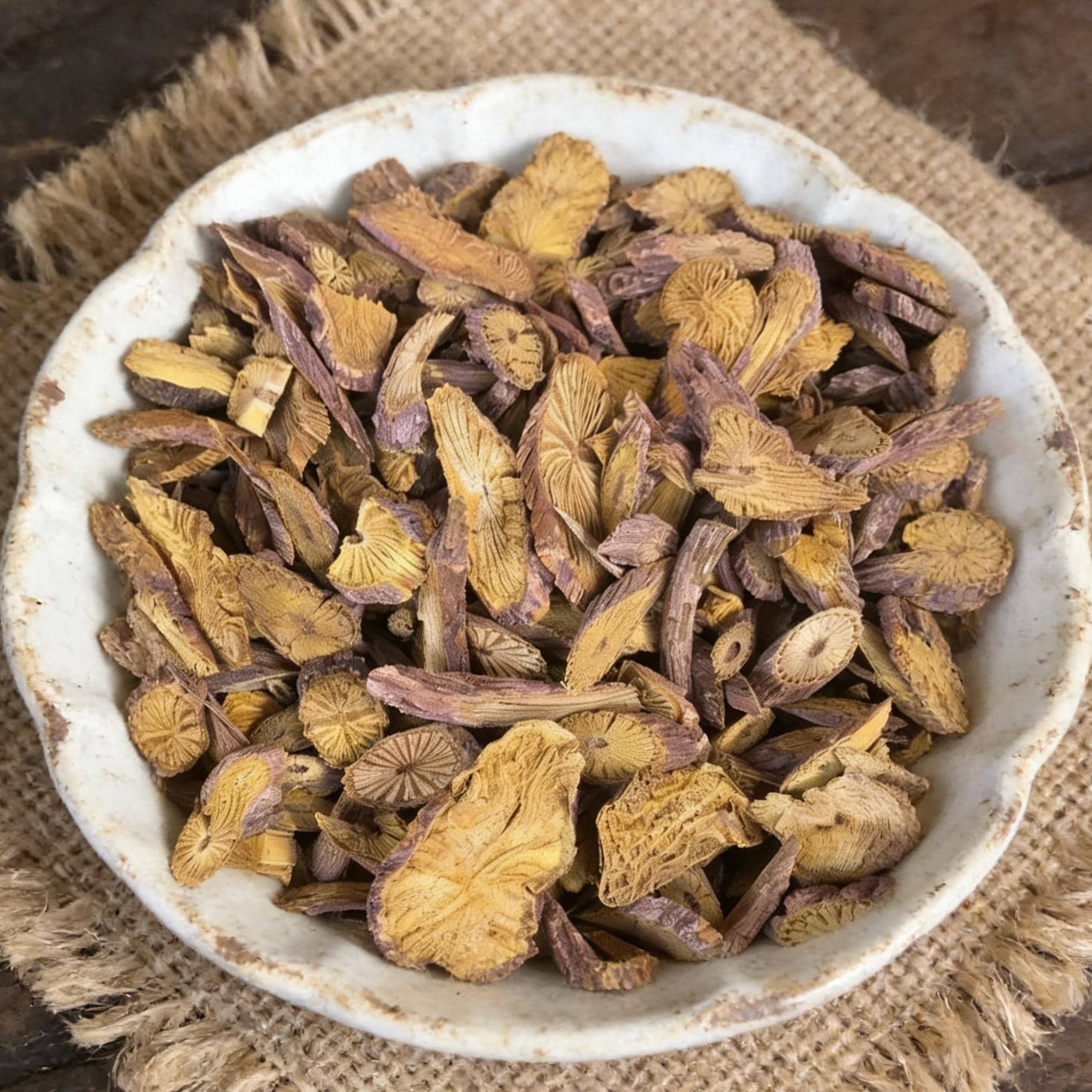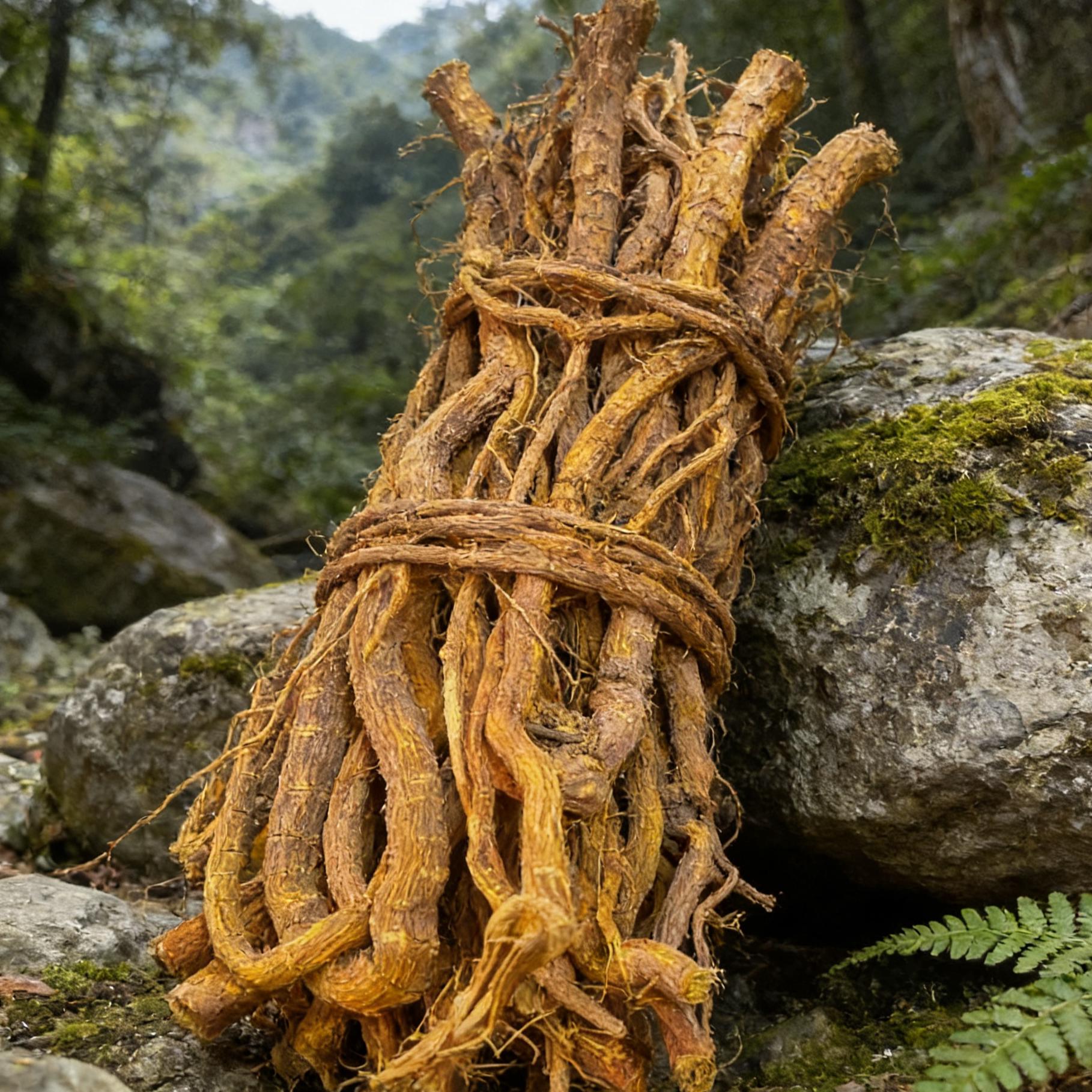 This listing offers dried stem pieces of Fibraurea tinctoria, carefully harvested, cleaned, and dried to preserve the vibrant yellow pigment contained within the inner bark and roots.