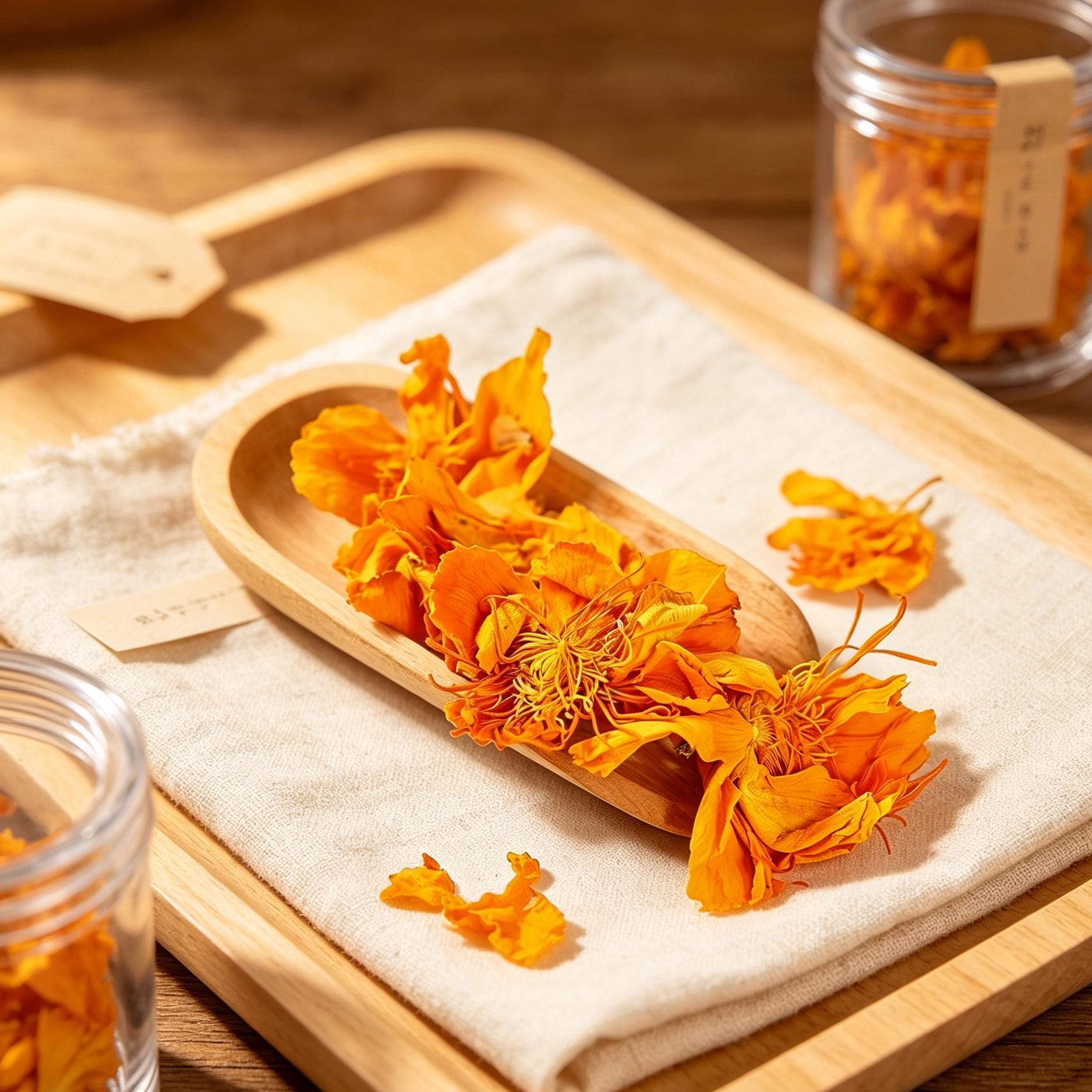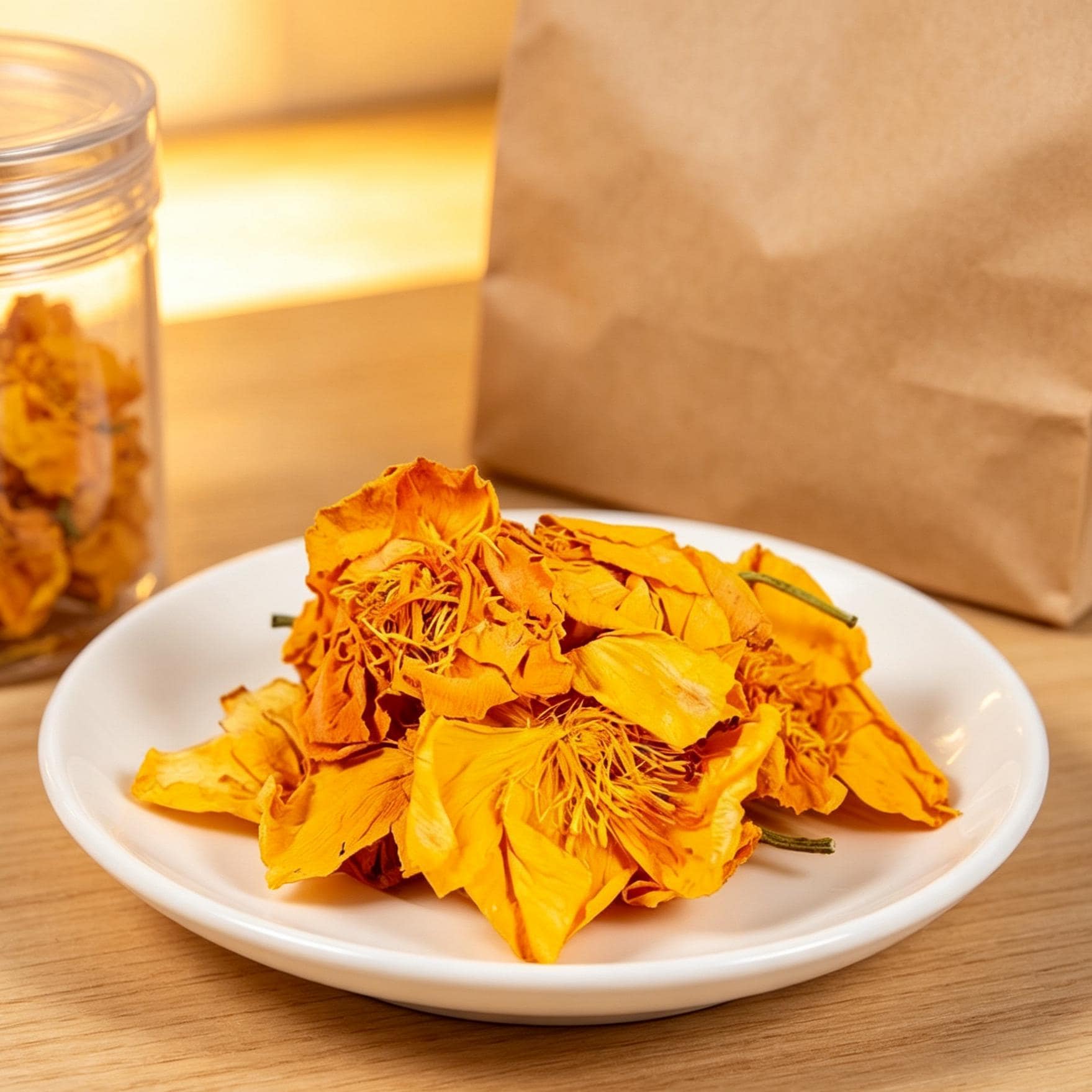 Enjoy the vibrant golden-yellow color and mild floral taste of premium Dried Globeflowers, also known as Trollius flowers. These whole dried flowers are carefully preserved to maintain their bright hue and delicate aroma.