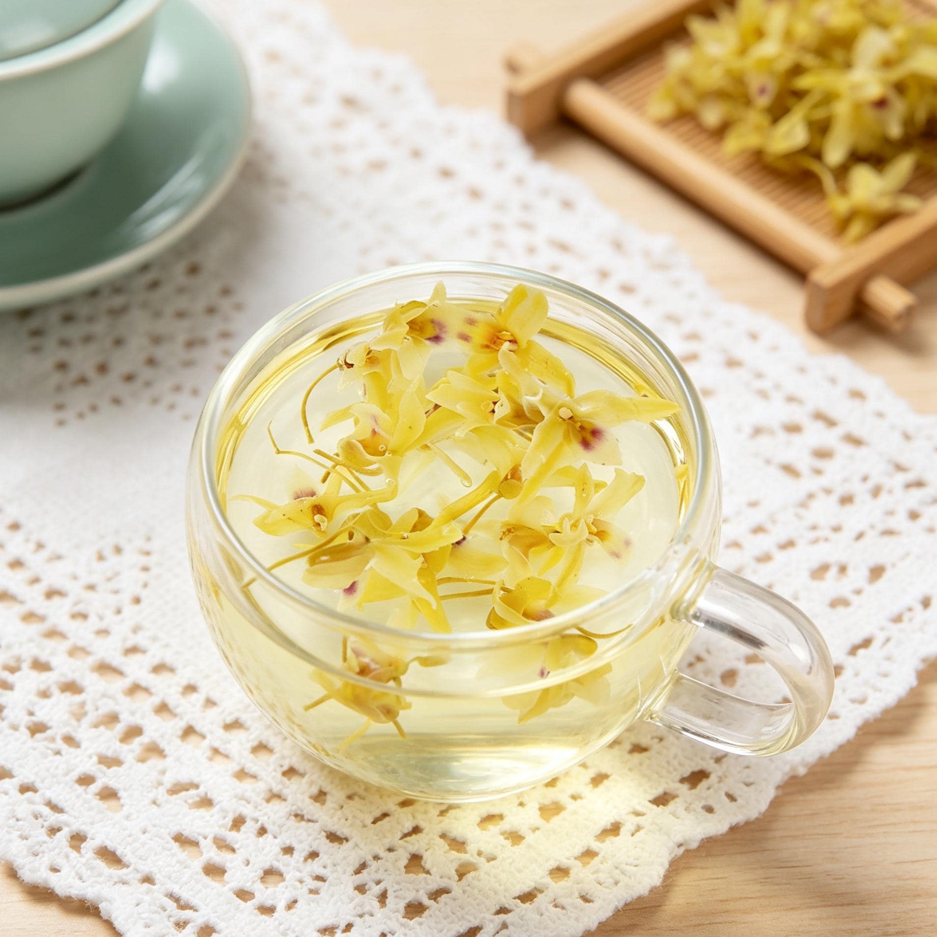Features: ✅ 100% natural dried dendrobium flowers ✅ No additives, preservatives, or artificial colors ✅ Whole flowers with a bright golden-yellow color ✅ Light, gentle floral scent