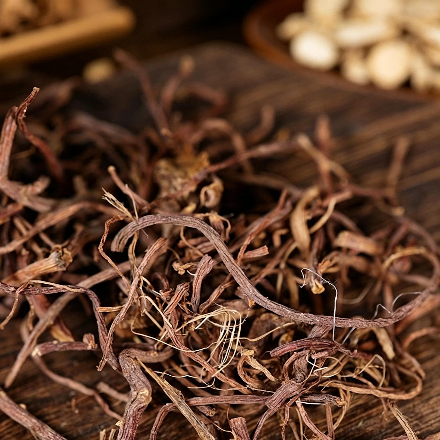🌿 Enjoy the distinctive appearance of premium Dried Tatarian Aster Root, also known as Zi Wan or Aster Tataricus Root. These dried root pieces are carefully harvested from the rhizome of Aster tataricus plants and sun-dried, often braided into their characteristic辫状 (braided) form.