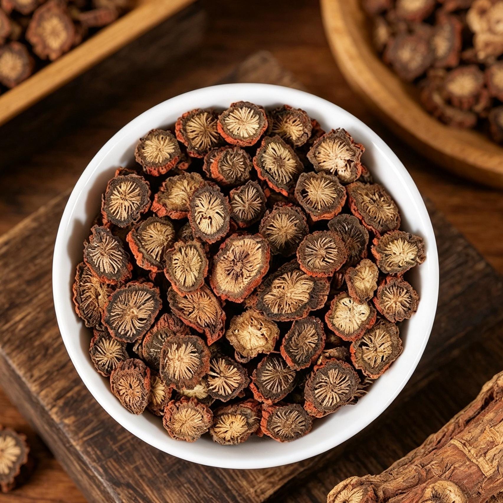 🌿 Enjoy the distinctive brick-red appearance of premium Dried Danshen Root, also known as Red Sage Root, Dan Shen Root, or Radix Salviae Miltiorrhizae (Salvia miltiorrhiza). These dried root slices are carefully harvested and sun-dried, preserving their characteristic reddish-brown to purple-red color and slightly wrinkled texture.