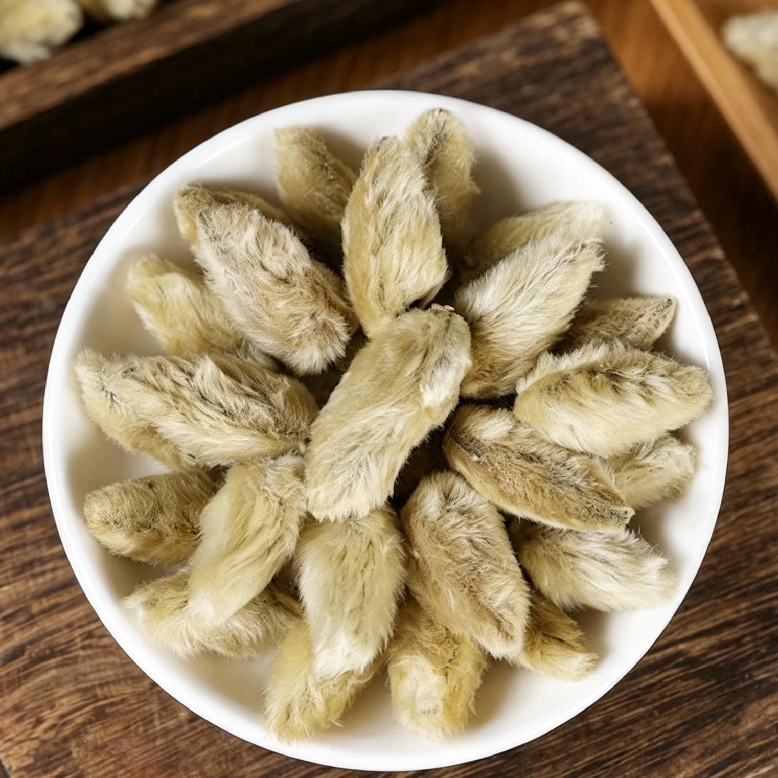 How to Use: ☕ Steep 2-3 fuzzy buds in hot water for 5-10 minutes to make an aromatic herbal tea – the buds slowly release their fragrance 🌼 Use in dried flower arrangements, wreaths, or boho-style vase decor – the fuzzy texture adds unique visual interest 🌸 Blend with other dried flowers like chrysanthemum or jasmine in tea blends 🛁 Add to DIY potpourri, aromatic sachets, or bath soaks 🎨 Suitable for botanical crafts, natural home decor, or pressed flower art